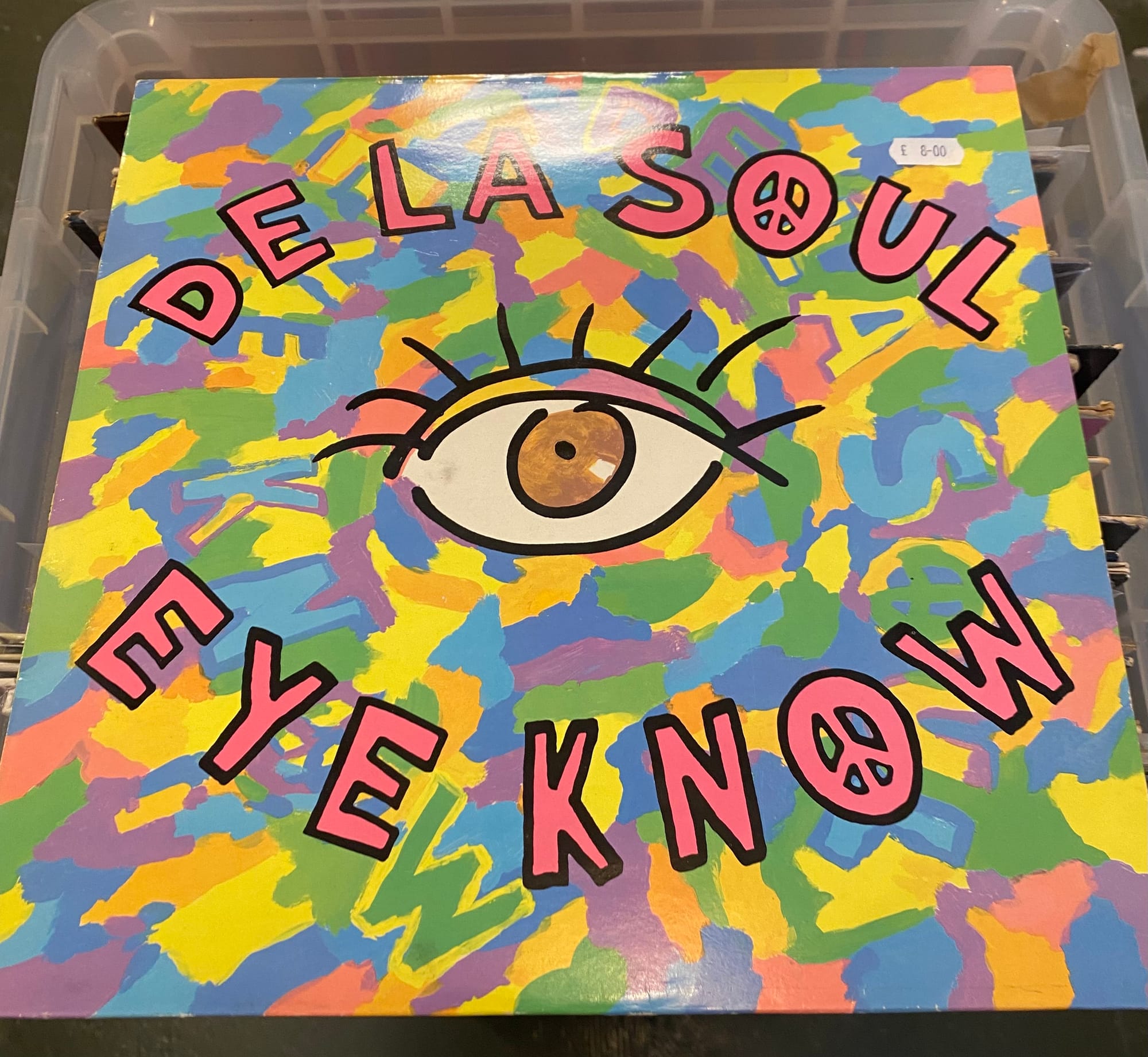 Picked up this 12" version of De La Soul’s Eye Know from Klangtone Records in Stroud and asked for a discount, as the B-side remix features the sound of a woman orgasming to the classic tune — which could make for some awkward listening in social situations. Shaun (the proprietor) said he should really charge me double for the privilege.