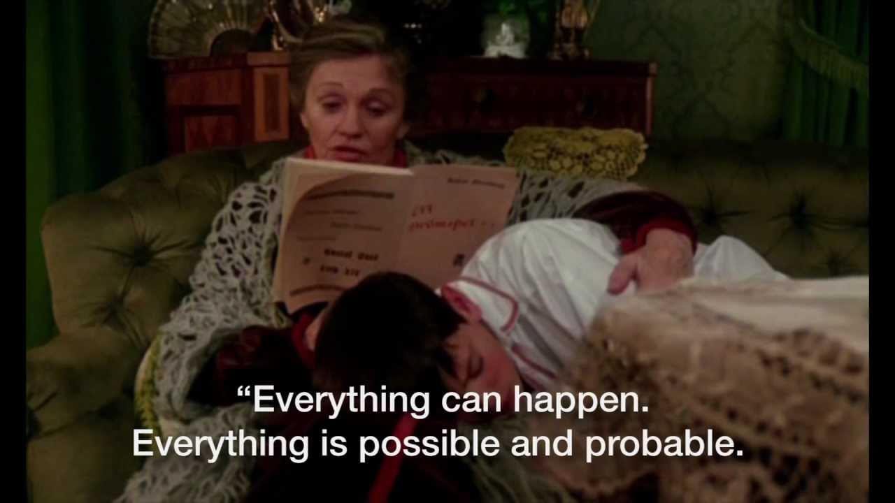 The world is a den of thieves and night is failing. Soon it will be the hour for robbers and murderers. Evil is breaking its chains and goes through the world like a mad dog. The poisoning affects us all, without exception, us Ekdahls and everyone else. No one escapes, not even Helena Viktoria or little Aurora over there in Amanda’s lap. (Weeps) So it shall be. Therefore let us be happy while we are happy, let us be kind, generous, affectionate, and good. Therefore it is necessary, and not in the least shameful, to take pleasure in the little world, good food, gentle smiles, fruit-trees in bloom, waltzes. And now, my dearest friends, my dearest brothers and sisters, I’ve done talking and you can take it for what you like—the effusions of an uncouth restaurant owner or the pitiful babbling of an old man. It doesn’t matter to me, I don’t care one way or the other. I am holding a little empress in my arms. It is tangible yet immeasurable. One day she will prove me wrong, one day she will rule over not only the little world but over—everything! Everything!