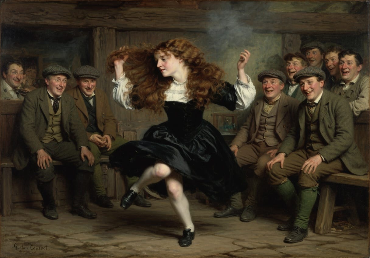 She danced, every St Patrick’s Day, the jig, for the soaked and sodden men gathered in the low-lit snug of her father’s public house, The Crock of Gold, their eyes bleared with porter and longing alike, and her legs, ah yes, her legs, though not what they had been, faltering more frequently in their silent betrayals, yet carried her still, for what did they know of it, those men, far gone beyond noticing, whistling and hollering as though no girl had ever stepped before them, no red-haired colleen to set the floor alight.