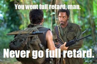 Why is the reaction to stupid things always to go even stupider? As Robert Downey Jr. says in Tropic Thunder: “Never go full retard.”